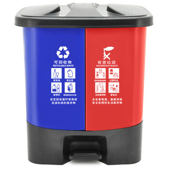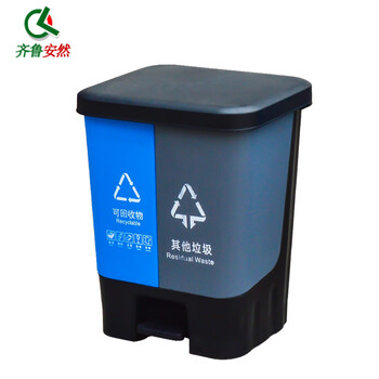 齐鲁安然 垃圾桶 带盖脚踏双桶可回收干湿分离垃圾分类垃圾箱 商用大号【蓝灰双色】25L