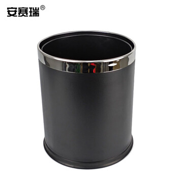 安赛瑞 双层不锈钢垃圾桶 钢圈垃圾箱酒店宾馆办公室用 双层黑色烤漆 2个装 10L 24022