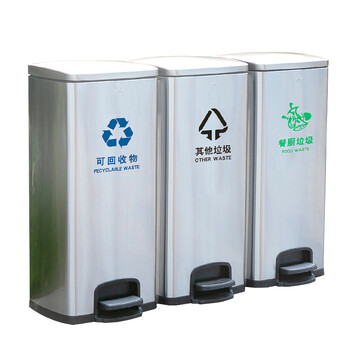 南 SJ20-F01F 南方方形脚踏分类桶 黑金 20L容量 酒店商场分类垃圾桶 带盖果皮桶 不锈钢大号垃圾桶