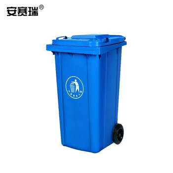 安赛瑞 户外垃圾桶 物业环卫分类塑料带盖带轮垃圾桶 100L大号商用垃圾桶 蓝色 710168
