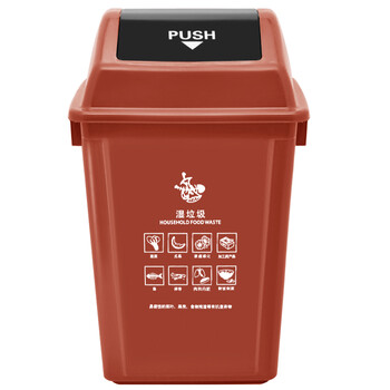 兰诗(LAUTEE)D033 摇盖分类垃圾桶 户外大号果皮箱干垃圾湿垃圾桶 可定制 60L棕色湿垃圾
