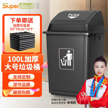 舒蔻(Supercloud)商用室内外塑料弹盖大号垃圾桶户外环卫酒店小区垃圾桶翻盖垃圾箱带盖 灰色100L