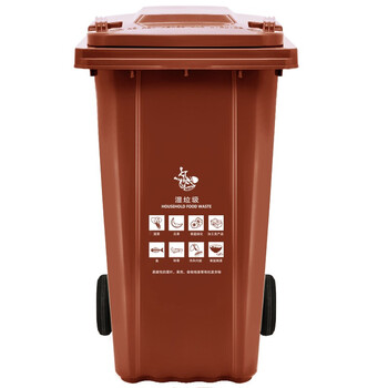 中典 垃圾分类垃圾桶240D带盖大号 240L咖啡色棕色湿垃圾