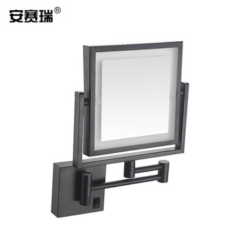 安赛瑞 浴室化妆镜 壁挂折叠伸缩LED双面梳妆镜 8英寸 酒店浴室卫生间放大镜美容镜 黑色 充电款 方形 710772