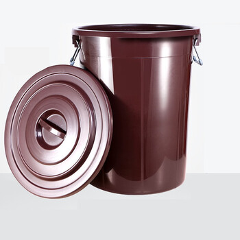 庄太太【咖啡色50L】大垃圾桶大号黑色户外环卫厨房无盖带盖圆形灰色商用塑料特大号桶
