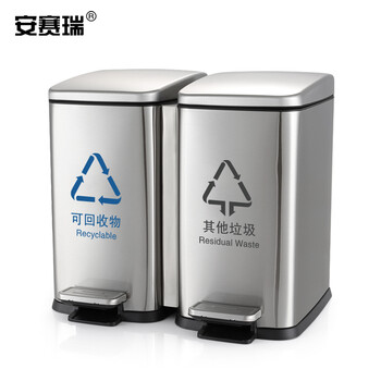 安赛瑞 不锈钢分类脚踏式垃圾桶 连体带盖可脚踩酒店物业办公学校商场电梯口室内外 双桶每个10L 700184