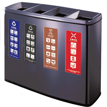 南 GPX-218E4 南方四分类垃圾桶 黑金 不锈钢户外垃圾桶户外环保垃圾桶烟灰桶广场小区公园环保垃圾桶