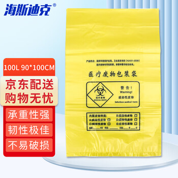 海斯迪克 HKW-103 加厚黄色医疗垃圾袋(50个)塑料袋 平口 100升90*100cm