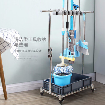 架海304不锈钢拖把架10挂12钩落地式可移动挂架扫把架墩布架清洁收纳架子