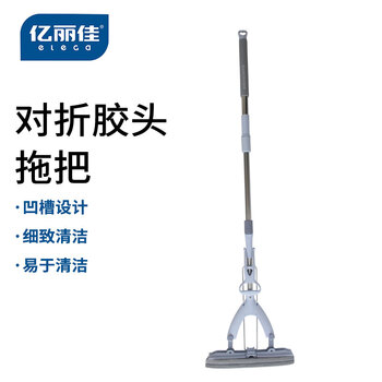 亿丽佳 对折式海绵拖把吸水墩布免手洗自动胶棉地板挤水式拖布 (紫云)大号对折伸缩杆双棉头27cm 10件/组