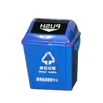 震迪 塑料垃圾桶 40L含盖上海分类款(可回收)弹盖蓝色塑料果皮箱环卫街道垃圾桶可定制 KT568物业垃圾箱