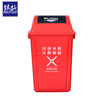 锐拓垃圾分类垃圾桶带盖环卫大号商用四色学校公司政府摇盖垃圾箱60L摇盖红色有害垃圾