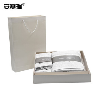 安赛瑞 毛巾礼盒套装 加厚清洁毛巾 毛巾浴巾方巾三件套 吸水毛巾 公司福利 含手提袋 本白 710871