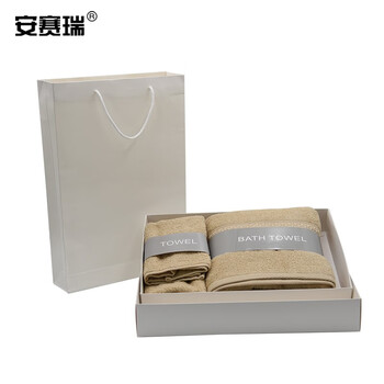 安赛瑞 毛巾礼盒套装 加厚清洁毛巾 毛巾浴巾方巾三件套 吸水毛巾 公司福利 含手提袋 白橡色 710872