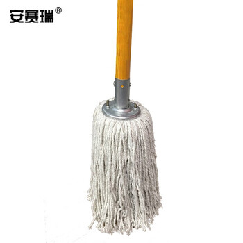 安赛瑞 木杆拖把 老式墩布尘推棉线拖把 圆头可悬挂拖把 工厂物业吸水拖布 白700572