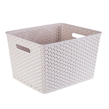 庄太太【米色大号无盖】仿藤编镂空收纳篮带盖收纳筐幼儿园玩具筐桌面整理盒