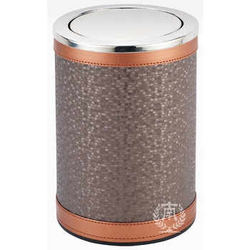 南 GPX-45P 翻盖套皮房间桶 咖色格皮纹 商用酒店宾馆客房翻盖垃圾桶 房间桶 果皮桶 内桶容量9升