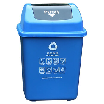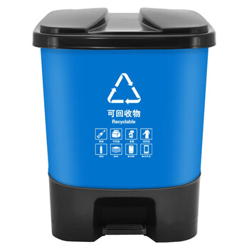 益美得 HX-40脚踏分类垃圾桶大号商用办公酒店 单桶脚踏40L蓝色(可回收物)