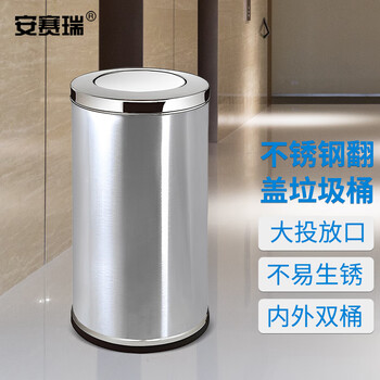 安赛瑞 不锈钢翻盖垃圾桶 港式圆形垃圾箱 大堂座地果皮桶 户外商场酒店垃圾箱 38×72cm 24435