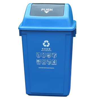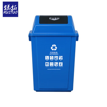 锐拓垃圾分类垃圾桶带盖环卫大号商用四色学校公司政府摇盖垃圾箱40L上海蓝色可回收物