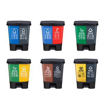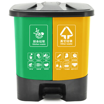 锐拓分类垃圾桶脚踏干湿分离双胞胎桶公司酒店大堂政府学校塑料户外垃圾箱60L