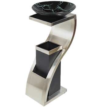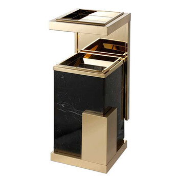庄太太【钛金黑石】欧式酒店大堂垃圾桶带烟灰缸大理石电梯口立式烟筒