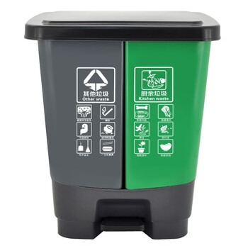 益美得 户外加厚双桶分类垃圾桶商用脚踏大号干湿分离垃圾分类垃圾桶 20L灰+绿