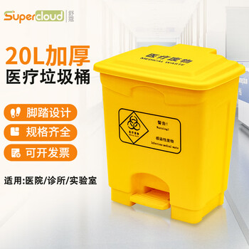 舒蔻(Supercloud) 医疗垃圾桶医院诊所实验室专用加厚废物黄色污物桶商用带盖 脚踏款20L