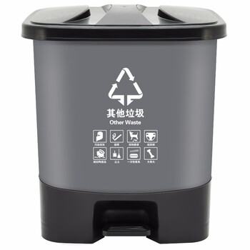 兰诗(LAUTEE)HX-40 脚踏分类垃圾桶 物业办公室带盖单格垃圾桶 40L灰色-其他垃圾