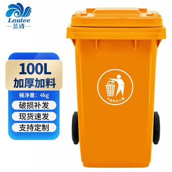 兰诗(LAUTEE)LJT2208 黄色100L垃圾桶户外桶 大号物业环卫垃圾桶
