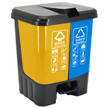 兰诗(LAUTEE)YJ-B046 脚踏分类双格垃圾桶 商用连体双桶垃圾桶 60L蓝黄