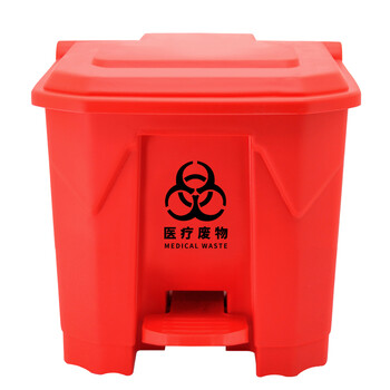 益美得 YJ-30脚踏垃圾桶大号医诊院疗所用垃圾箱加厚带盖废物垃圾桶 红色脚踏30L
