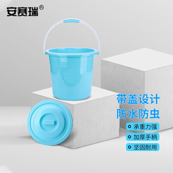 安赛瑞 塑料水桶 带盖储水桶 15L 多功能清洁洗车桶收纳桶 加厚手提桶 蓝 710921