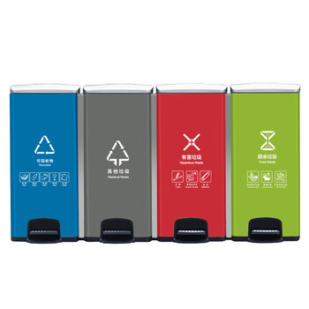 益美得 LD-1011 不锈钢脚踏垃圾桶酒店办公室单位干湿脚踩分类垃圾桶静音带盖 四分类120L