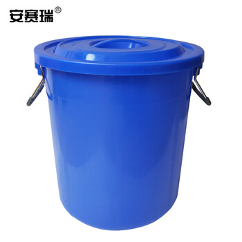 安赛瑞 大号塑料圆桶 大号圆形收纳桶 大容量水桶 食堂光盘环卫物业餐厨垃圾桶 100L 蓝色有盖24384