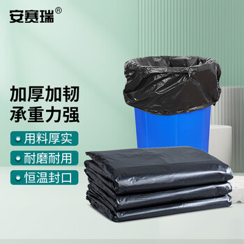 安赛瑞 黑色塑料袋 商用物业酒店办公加厚大号垃圾袋平口 宽60cm长90cm50只装 700901