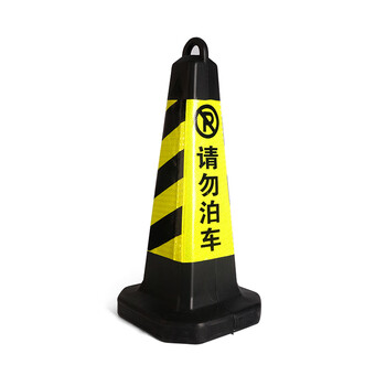 庄太太【塑料-黄黑请勿泊车】反光塑料路锥橡胶pu警示桩柱隔离墩路障雪糕筒禁止