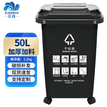 兰诗(LAUTEE)D060 大号户外垃圾桶 物业环卫分类垃圾桶果皮箱可定制 50L四轮黑色干垃圾
