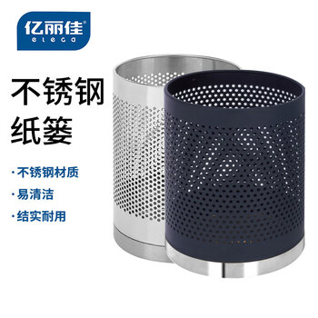 亿丽佳不锈钢垃圾桶办公室圆形纸篓酒店宾馆商场无盖镂空收纳筒桶(黑色)10个一组