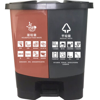 纽仕达 50L升户外双桶分类垃圾桶分类商用脚踏大号拉圾桶 咖啡色黑色 干垃圾+湿垃圾