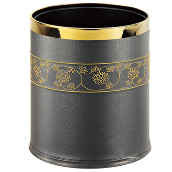 南 GPX-45N 南方圆形双层浮雕花房间桶 黑色回形花 商用酒店宾馆客房垃圾桶 房间桶 果皮桶 内桶容量9.8升