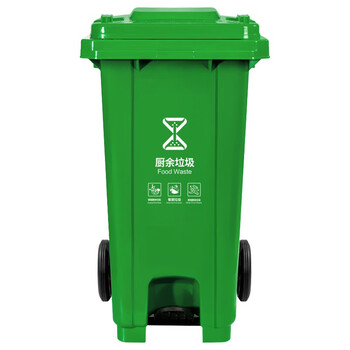 益美得 新国标脚踏分类垃圾桶户外大号环卫垃圾桶 脚踏120L绿色(厨余垃圾)