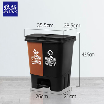 锐拓分类垃圾桶脚踏干湿分离双胞胎桶公司酒店大堂政府学校塑料户外垃圾箱20L