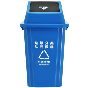 益美得 塑料摇盖分类垃圾桶大号办公室物业学校垃圾箱 正方桶100L蓝色(可回收物)