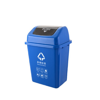 中典 苏州版垃圾分类垃圾桶20L-A带盖大号蓝色其他垃圾20L摇盖桶