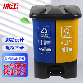 亿丽佳户外双桶干湿分离垃圾桶可回收物其他垃圾分类商用脚踏垃圾桶60L