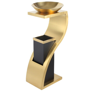 兰诗(LAUTEE)WY6020 酒店大堂立式烟灰缸不锈钢垃圾桶带灭烟盆 S型钛金配钛金盆