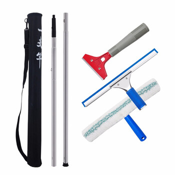 兰诗(LAUTEE)L-2028 一支杆玻璃清洁套装 铝合金拼接杆 (2米杆+玻璃刮+T头擦+铲刀)四件套