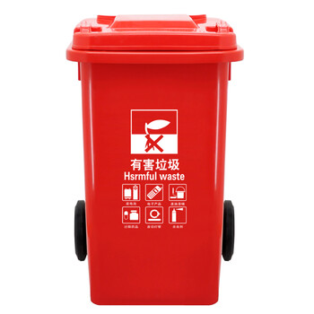 中典 苏州版垃圾分类垃圾桶120A带盖大号红色有害垃圾商用户外公共场合 120L带轮分类