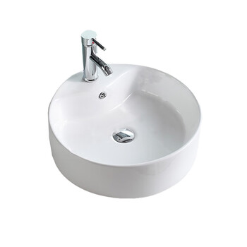 立新求精 超薄边陶瓷洗手盆台上盆白色洗手池面盆中白盆40cm+下水(定制)